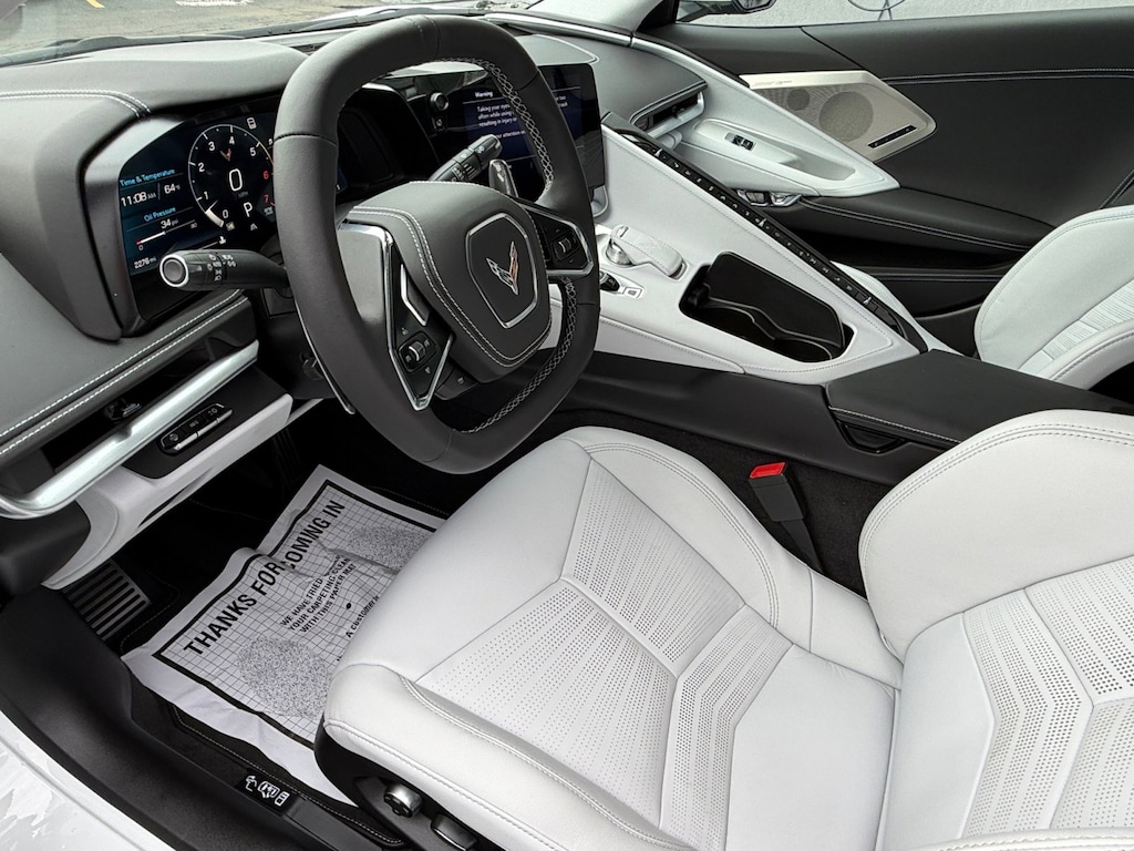 Boasting a powerful 6.2L V8 engine and an 8-speed dual-clutch transmission, the Corvette Stingray 3LT delivers an exhilarating performance that will leave you breathless. With its sleek, aerodynamic design and a striking white exterior, this vehicle turns heads wherever it goes. But it's the impressive array of features that truly sets this Corvette apart: