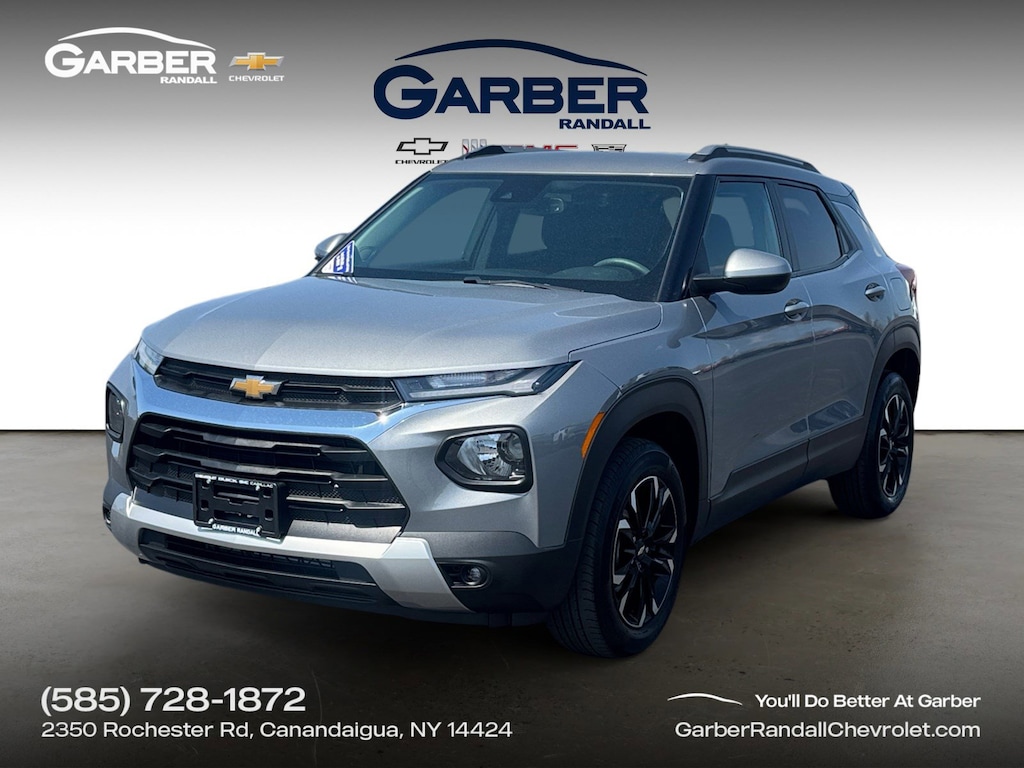 Certified. Sterling Gray Metallic 2023 Chevrolet TrailBlazer LT AWD 9-Speed Automatic 1.3L Ecotec Turbo DOHC SIDI w/VVT AWD Capability, Low Mileage Vehicle, Service Records Available!, Bluetooth Audio Streaming, Low Rate Financing Available!, Good and Bad Credit Programs Available - Ask us How!, Service Contracts to 100,000 Miles Available!, 1 Type-A & 1 Type-C USB Charging-Only Ports, 120-Volt Power Outlet, 8" Diagonal Color Touchscreen Display, Convenience Package, Driver & Front Passenger Illuminated Vanity Mirrors, Driver Confidence Package, Inside Rear-View Auto-Dimming Mirror, Lane Change Alert w/Side Blind Zone Alert, Preferred Equipment Group 1LT, Rear Cross Traffic Alert, Rear Park Assist, Single-Zone Auto Climate Control Air Conditioning.At Garber Randall, we've been in the business of creating a customer experience that brings customers back time and time again since 1907. Our commitment to excellence is why we proudly say, "You'll do better at Garber!" With a knowledgeable and experienced staff, a wide selection of new and preowned vehicles, and hassle-free financing, Garber Randall is your one-stop shop for all your vehicle needs. Join the countless satisfied customers who trust us for top-notch service and find your perfect ride today. Call us or visit our dealership in Canandaigua, NY to experience the Garber Randall difference. Recent Arrival! 26/30 City/Highway MPGCertification Program Details: CarBravo offers certified used vehicle benefits including a 12-month/12,000-mile limited bumper-to-bumper warranty, 126-point inspection, 24/7 roadside assistance, and courtesy transportatio
