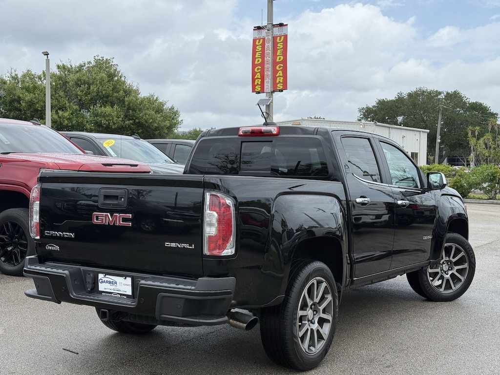 SAVE NOW DURING GARBER PRE-OWNED Sales Event! Clean CARFAX. CLEAN CARFAX, BACKUP CAMERA, BED LINER, HEATED & COOLED LEATHER SEATS, NAVIGATION, POWER DRIVER SEAT, TRAILER TOW, 4X4, ANDROID AUTO, APPLE CAR PLAY, FRONT COLLISION WARNING, LANE KEEP ASSIST, REMOTE START, BOSE AUDIO, AUTOMATIC CLIMATE CONTROL, Canyon Denali, 4D Crew Cab, 2.8L Duramax Turbodiesel, 6-Speed Automatic, 4WD, Onyx Black, Black Leather, 2 USB Data Ports, 3.42 Rear Axle Ratio, 4-Way Power Front Passenger Seat Adjuster, 4-Wheel Disc Brakes, 5" Rectangular Chrome Assist Steps, ABS brakes, Air Conditioning, Alloy wheels, AM/FM radio: SiriusXM, Auto-dimming Rear-View mirror, Black Bed Rails (LPO), Black Spray-On Bedliner w/GMC Logo, Bose Premium 7-Speaker Audio System Feature, Bumpers: body-color, Cargo Tie-Down Rings (Set of 4) (LPO), Compass, Delay-off headlights, Denali-Specific Chrome Grille, Driver 6-Way Power Seat Adjuster, Driver Alert Package, Driver door bin, Driver vanity mirror, Dual front impact airbags, Dual front side impact airbags, Electronic Stability Control, Exhaust Brake, Exterior Parking Camera Rear, Forward Collision Alert, Front anti-roll bar, Front Bucket Seats, Front Center Armrest, Front fog lights, Front reading lights, Front wheel independent suspension, Fully automatic headlights, HD Radio, Heated door mirrors, Heated Driver & Front Passenger Seats, Heated front seats, Heated Steering Wheel, Heated steering wheel, Illuminated entry, Integrated Trailer Brake Controller, Lane Departure Warning System, Low tire pressure warning, Navigation System, Occupant sensing airbag, Outside temperature display, Overhead airbag, Overhead console, Panic alarm, Passenger door bin, Passenger vanity mirror, Perforated Leather-Appointed Seat Trim, Polished Exhaust Tip, Power door mirrors, Power Driver Lumbar Control Seat Adjuster, Power Passenger Lumbar Control Seat Adjuster, Power passenger seat, Power steering, Power windows, Preferred Equipment Group 4SD, Premium audio system: GMC Infotainment System, Radio data system, Radio: AM/FM w/8" Diagonal Color Touch-Screen Nav, Rear reading lights, Rear seat center armrest, Rear step bumper, Rear window defroster, Security system, SiriusXM Radio, Speed control, Speed-sensing steering, Steering wheel mounted audio controls, Tachometer, Telescoping steering wheel, Tilt steering wheel, Tow/Haul Mode, Traction control, Trailering Assist Guideline Hitch Guidance, Trailering Package, Trip computer, Ultrasonic Rear Parking Assist, Variably intermittent wipers, Ventilated Driver Seat, Ventilated Front Passenger Seat, Ventilated front seats, Wheels: 20" x 8.5" Ultra-Bright Machined Aluminum.