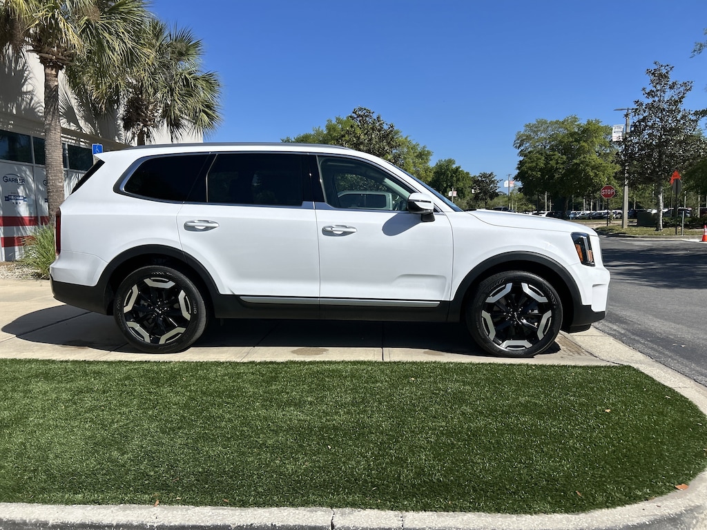 2024 Kia Telluride S Glacial White Pearl WINDOW TINT, 3rd row seats: split-bench, 4-Wheel Disc Brakes, 6 Speakers, ABS brakes, AM/FM radio: SiriusXM, Apple CarPlay & Android Auto, Auto High-beam Headlights, Automatic temperature control, Driver vanity mirror, Electronic Stability Control, Emergency communication system: 911 Connect, Exterior Parking Camera Rear, Four wheel independent suspension, Front dual zone A/C, Front reading lights, Fully automatic headlights, Heated door mirrors, Heated Front Bucket Seats, Illuminated entry, Leather Shift Knob, Leather steering wheel, Low tire pressure warning, Navigation System, Outside temperature display, Overhead console, Passenger vanity mirror, Power door mirrors, Power driver seat, Power Sunroof w/Sunshade, Power windows, Rear air conditioning, Rear audio controls, Rear reading lights, Reclining 3rd row seat, Remote keyless entry, S Sunroof Package, Security system, Smart Key w/ Push Button and Remote Start, Speed control, Split folding rear seat, Steering wheel mounted audio controls, Telescoping steering wheel, Tilt steering wheel, Wheels: 20" x 7.5" Black Finish.